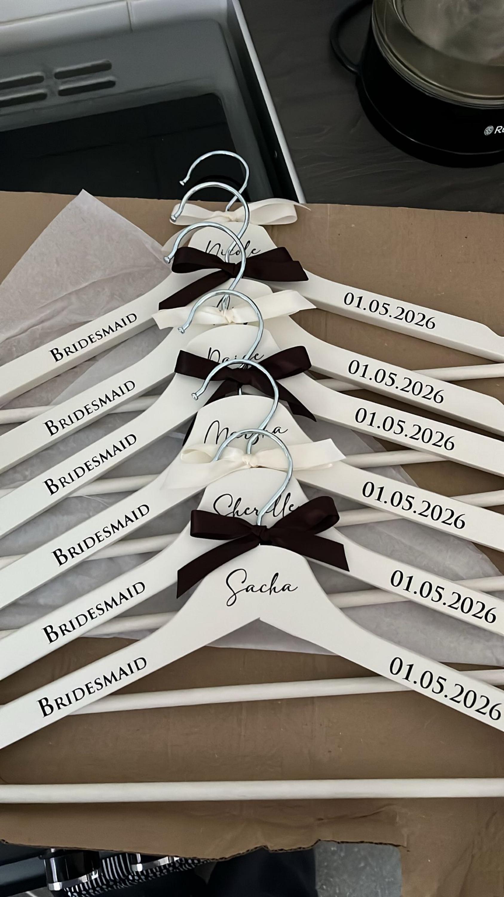Elevate your special occasions with our personalized hangers, designed to showcase your stunning outfits and create unforgettable photographs. These hangers make for a cherished keepsake.